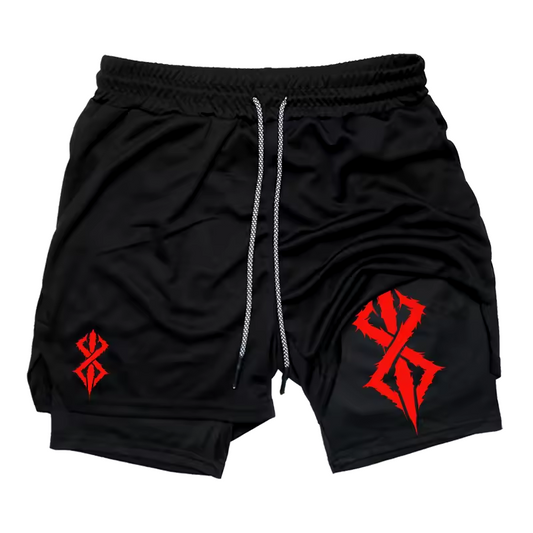 Brand of Sacrifice Berserk Anime Two-Layer Gym Shorts | Dark Fantasy Workout Shorts | Guts Inspired Fitness Wear
