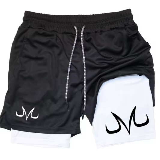 Majin Vegeta M Symbol Two-Layer Gym Shorts | Dragon Ball Z DBZ Anime Workout Shorts | Saiyan Power Fitness Wear v2