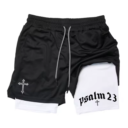 Psalm 23 Gym Shorts | Faith-Inspired Performance Shorts | Breathable Two-Layer Workout Gear
