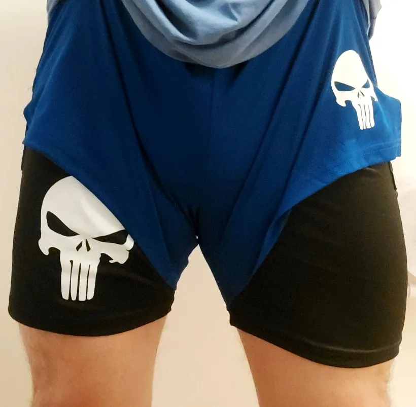 Skull Punisher Anti-Hero Two-Layer Gym Shorts | Vigilante Workout Shorts | Dark Skull Fitness Wear